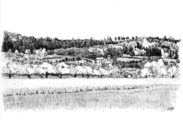 Le bâti émerge des frondaisons fleuries des vergers – Ville-sur-Yron